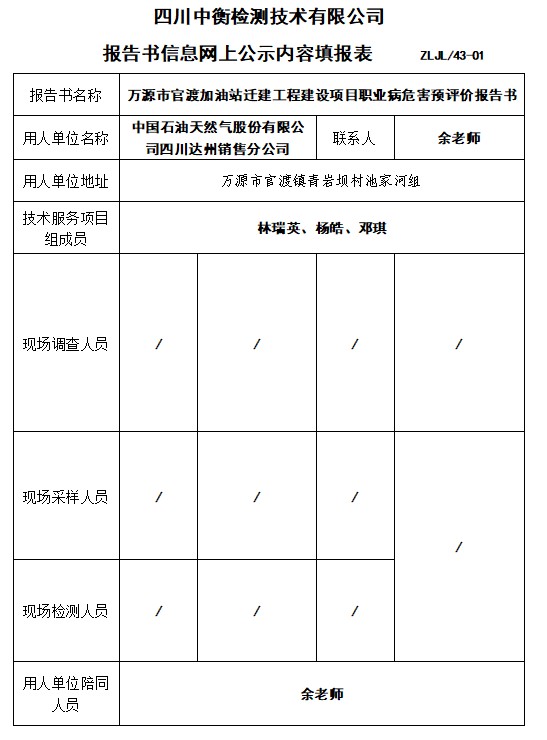萬源市官渡加油站遷建工程建設項目職業病危害預評價報告書