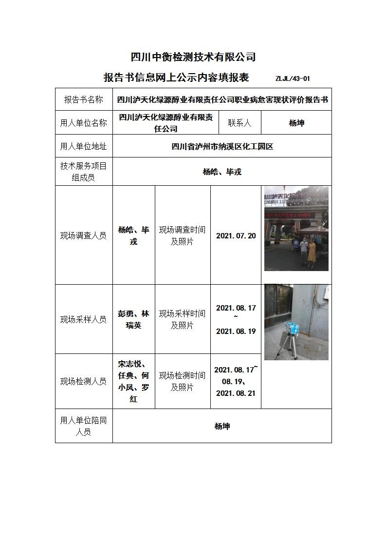 四川瀘天化綠源醇業(yè)有限責(zé)任公司職業(yè)病危害現(xiàn)狀評價