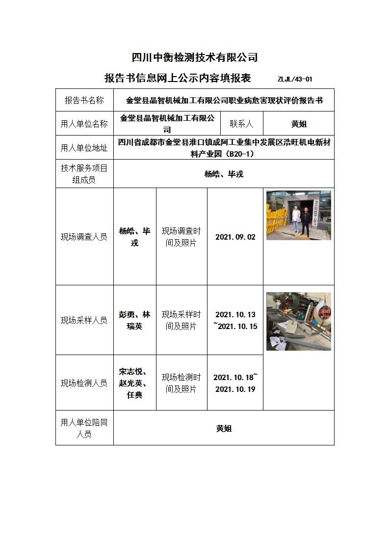 金堂縣晶智機械加工有限公司職業(yè)病危害現(xiàn)狀評價