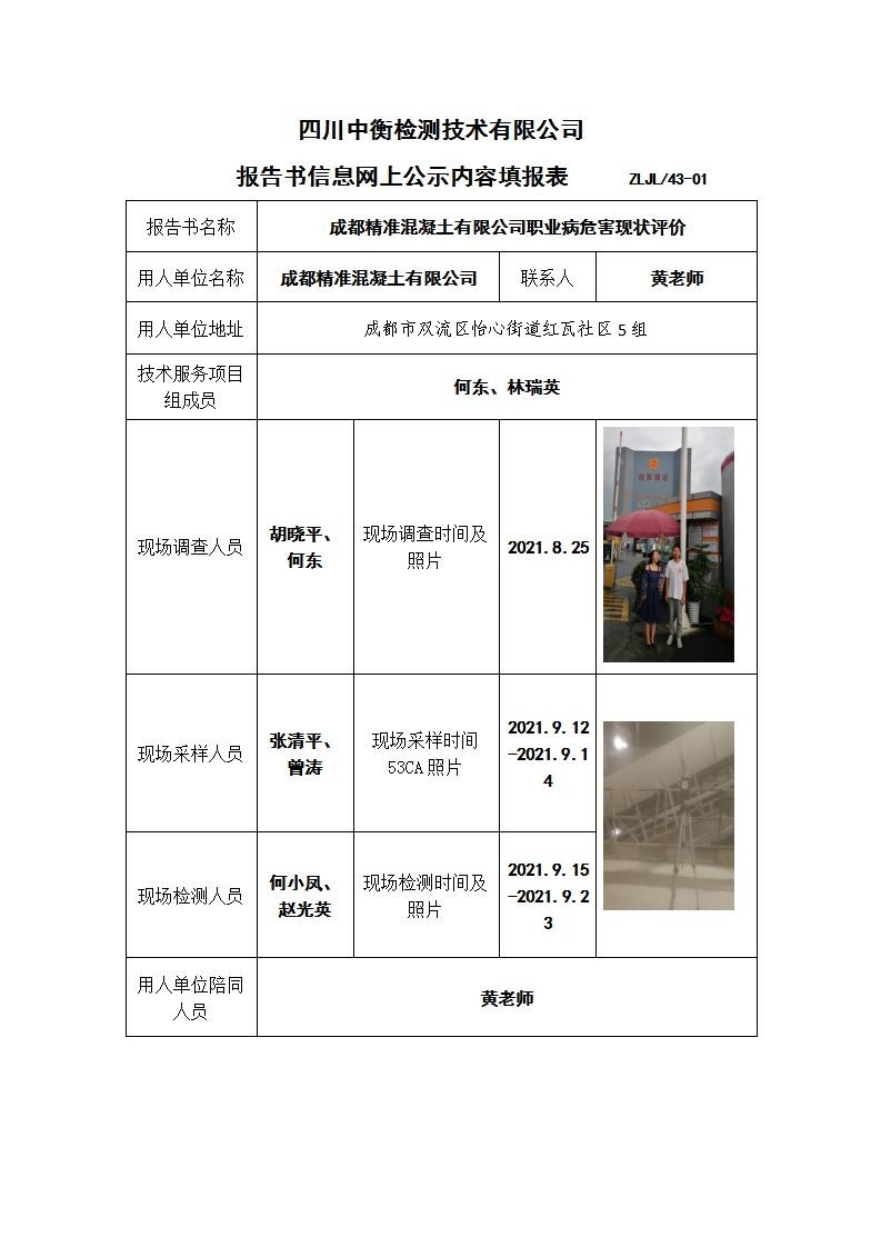 成都精準(zhǔn)混凝土有限公司職業(yè)病危害現(xiàn)狀評價