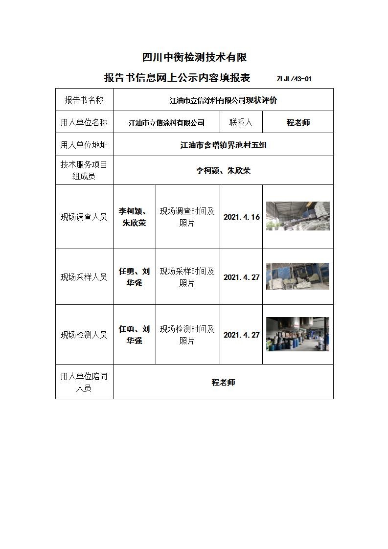 江油市立信涂料有限公司現(xiàn)狀評(píng)價(jià)