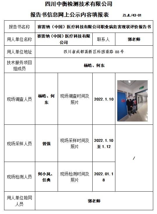 賽雷納(中國)醫(yī)療科技有限公司職業(yè)病危害現(xiàn)狀評價(jià)