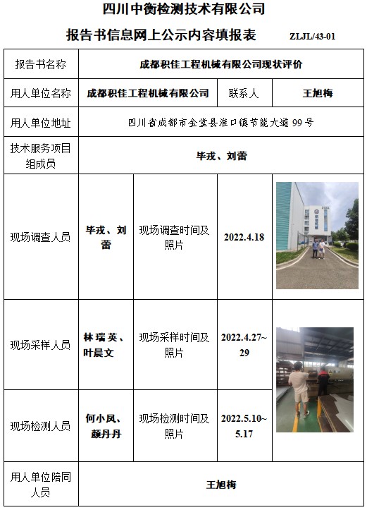 成都積佳工程機械有限公司現狀評價