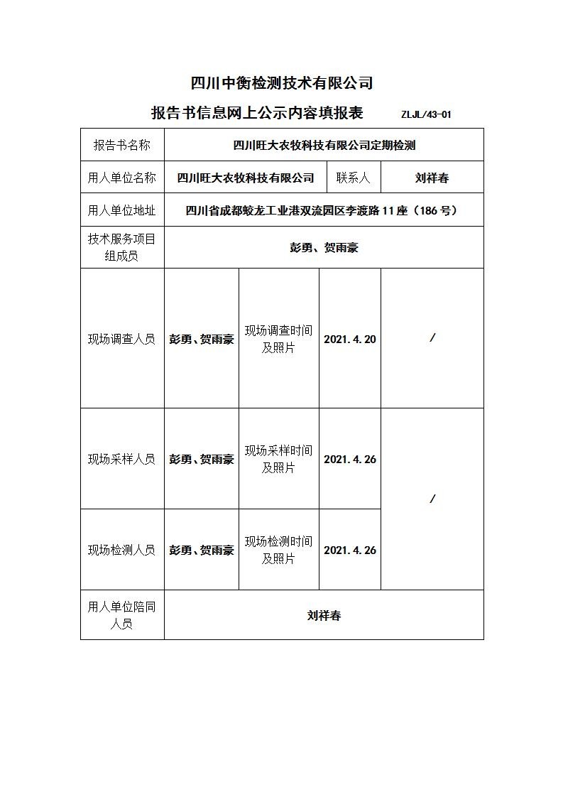 四川旺大農(nóng)牧科技有限公司職業(yè)病危害定期檢測(cè)