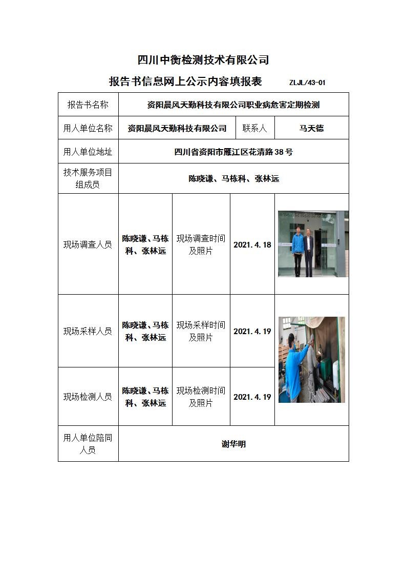 資陽晨風天勤科技有限公司職業病危害定期檢測