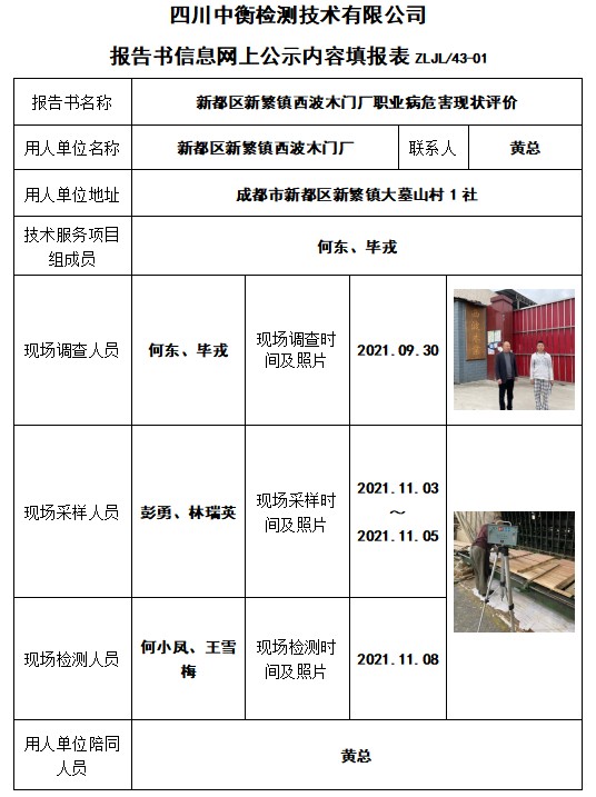 新都區新繁鎮西波木門廠職業病危害現狀評價