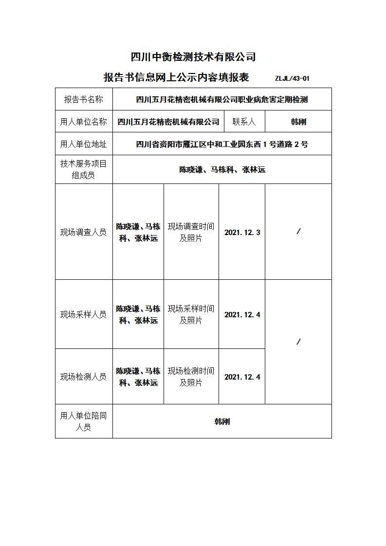 四川五月花精密機械有限公司職業(yè)病危害定期檢測