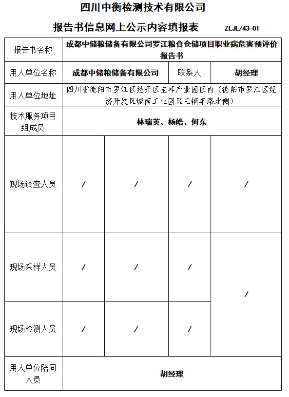 成都中儲糧儲備有限公司羅江糧食倉儲項目職業病危害預評價