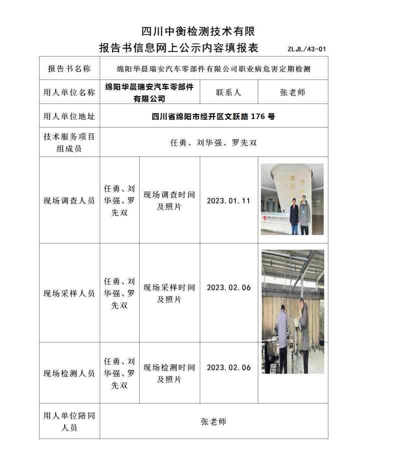綿陽(yáng)華晨瑞安汽車零部件有限公司職業(yè)病危害定期檢測(cè)
