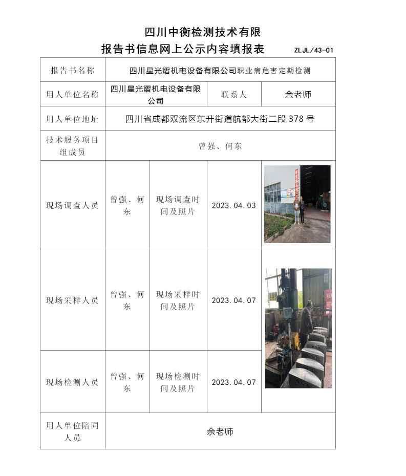 四川星光熠機電設備有限公司職業病危害定期檢測