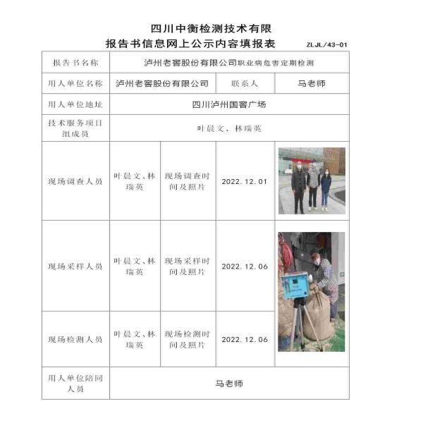 瀘州老窖股份有限公司職業(yè)病危害定期檢測