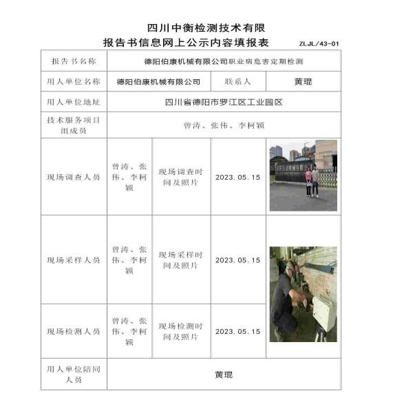 德陽伯康機械有限公司職業(yè)病危害定期檢測