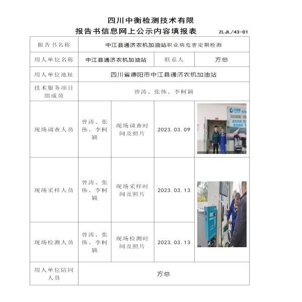 中江縣通濟(jì)農(nóng)機(jī)加油站職業(yè)病危害定期檢測