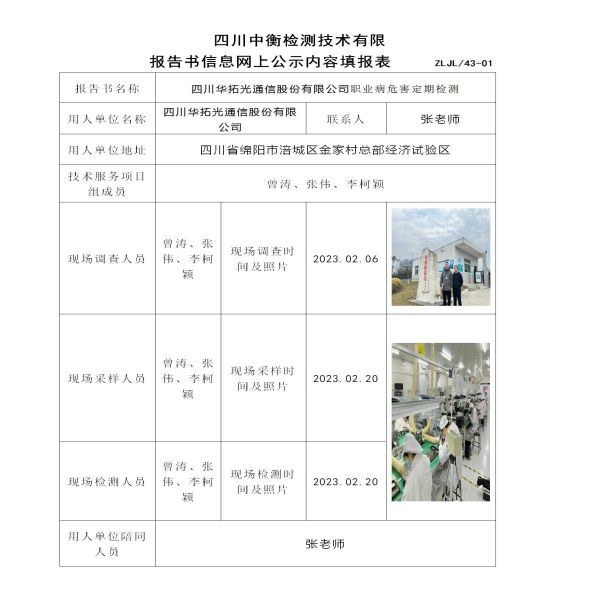 四川華拓光通信股份有限公司職業(yè)病危害定期檢測