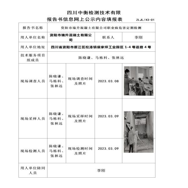資陽市瑞升混凝土有限公司職業(yè)病危害定期檢測