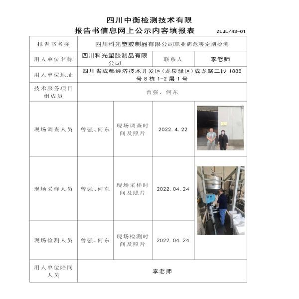 四川科光塑膠制品有限公司控制效果評(píng)價(jià)