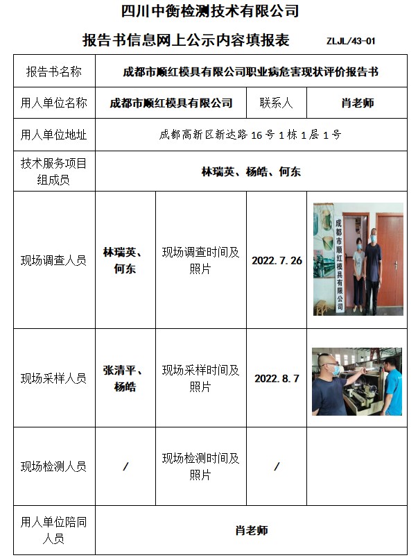 成都市順紅模具有限公司現狀評價