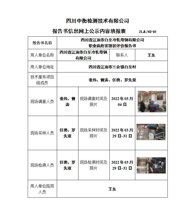 四川省江油市白至冷軋帶鋼有限公司職業病危害現狀評價
