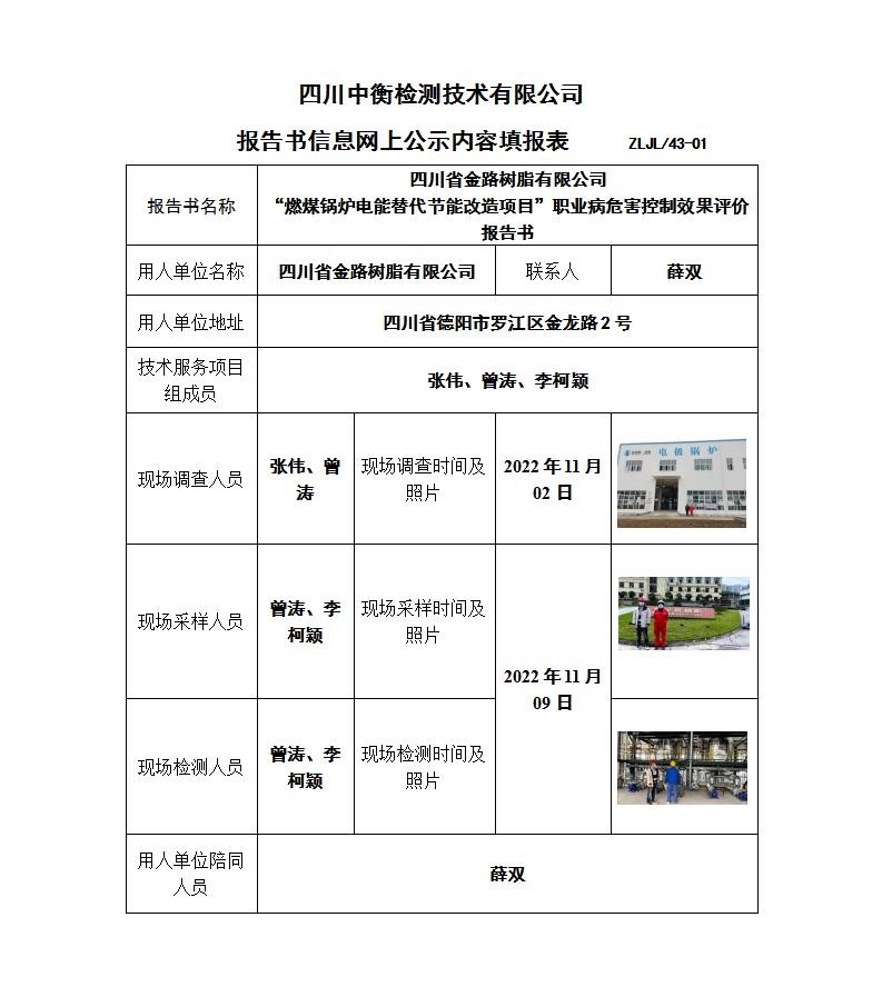 四川省金路樹(shù)脂有限公司 “燃煤鍋爐電能替代節(jié)能改造項(xiàng)目”職業(yè)病危害控制效果評(píng)價(jià)