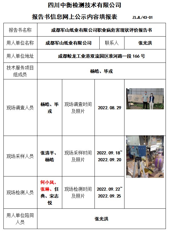 成都軍山紙業(yè)有限公司現(xiàn)狀評價