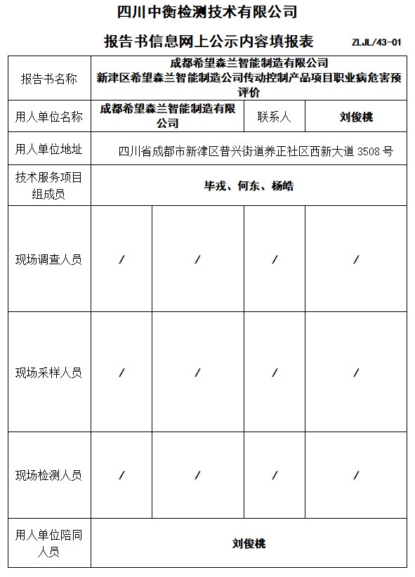 成都希望森蘭智能制造有限公司 新津區希望森蘭智能制造公司傳動控制產品項目預評價
