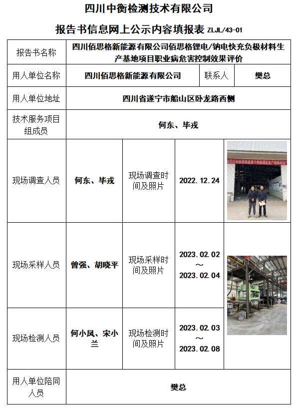 四川佰思格新能源有限公司佰思格鋰電/鈉電快充負極材料生產基地項目控制效果評價