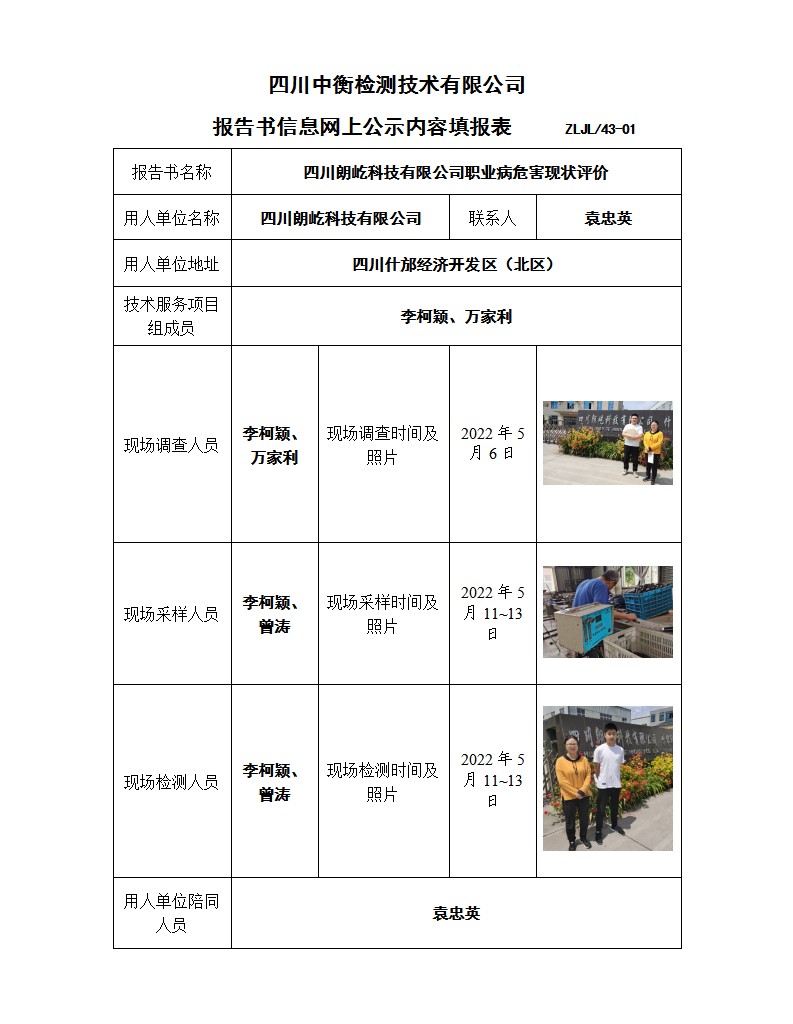 四川朗屹科技有限公司 職業病危害現狀評價報告書