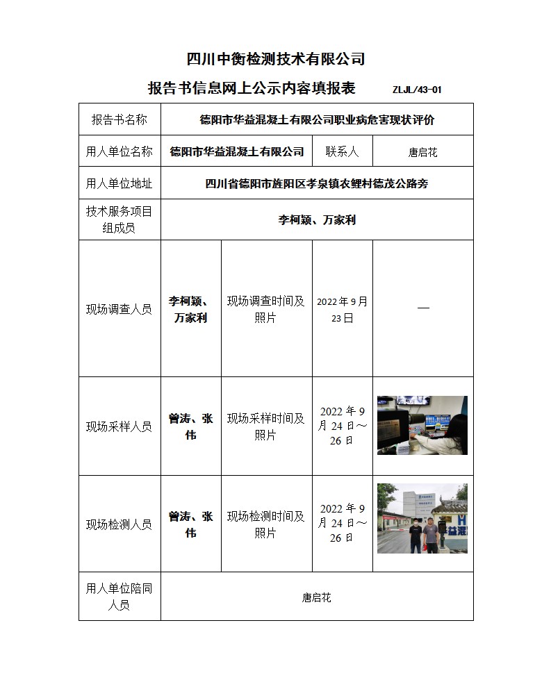 德陽市華益混凝土有限公司 職業(yè)病危害現(xiàn)狀評(píng)價(jià)報(bào)告書