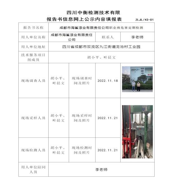成都市海鯊漆業有限責任公司定期檢測