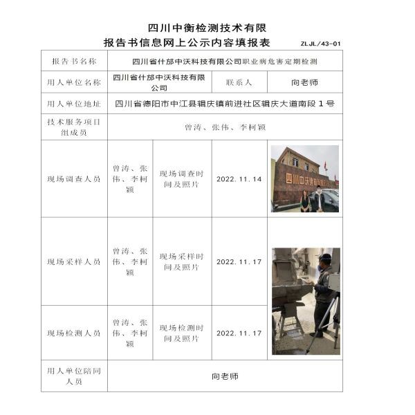 四川省什邡中沃科技有限公司定期檢測