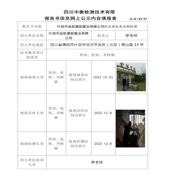 什邡市金陽塑膠管業(yè)有限公司定期檢測