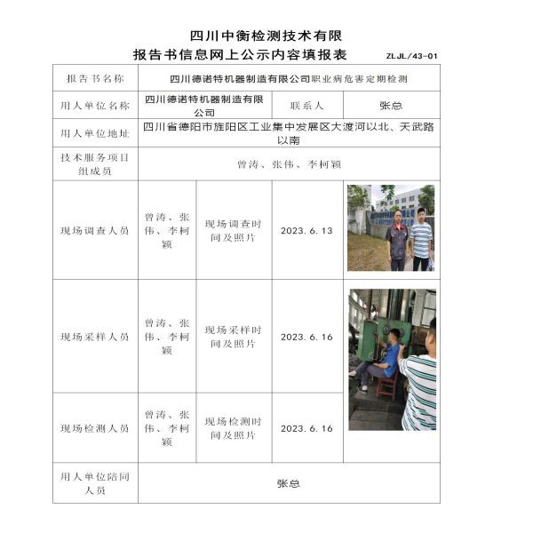 四川德諾特機器制造有限公司定期檢測