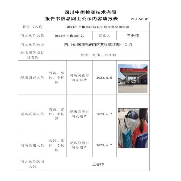 德陽市飛鑫加油站定期檢測