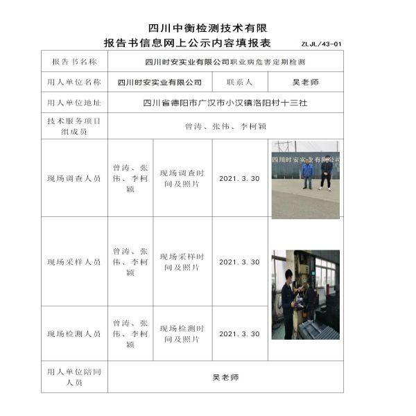 四川時(shí)安實(shí)業(yè)有限公司定期檢測(cè)