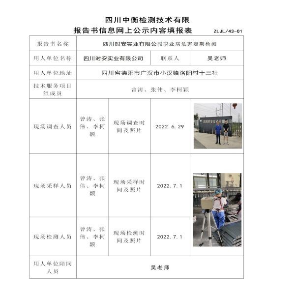 四川時(shí)安實(shí)業(yè)有限公司定期檢測