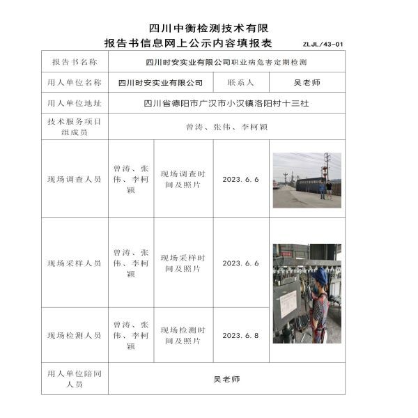 四川時安實業有限公司定期檢測