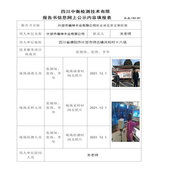 什邡市福坤木業(yè)有限公司定期檢測(cè)