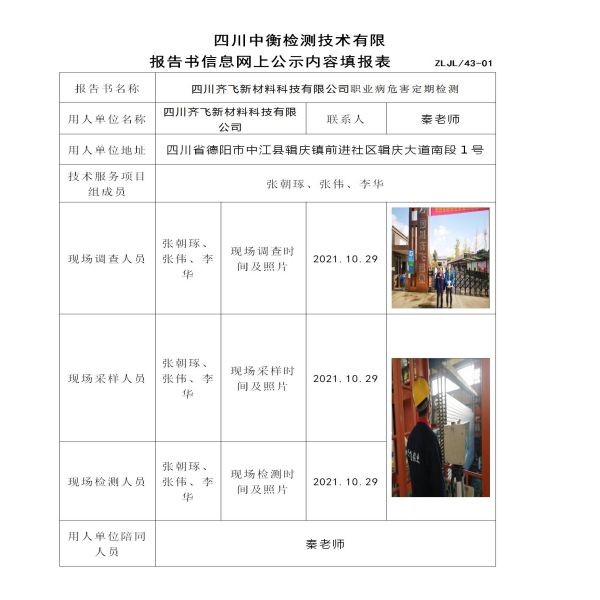 四川齊飛新材料科技有限公司定期檢測