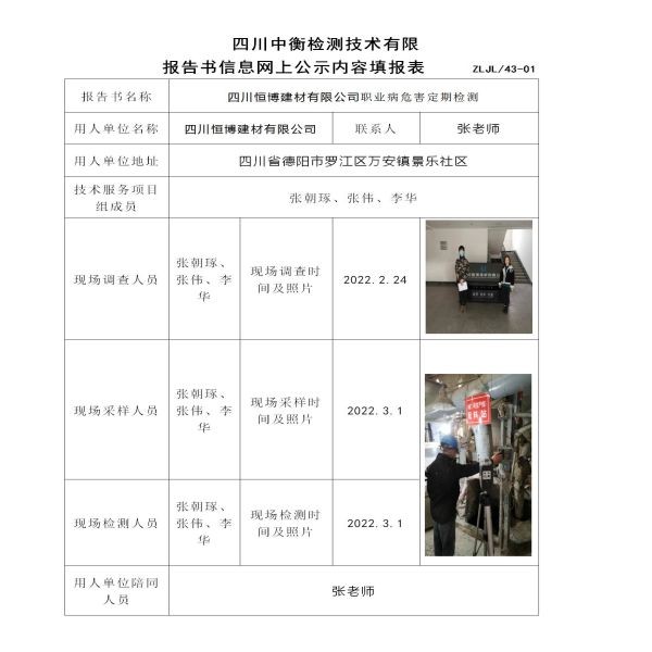 四川恒博建材有限公司定期檢測