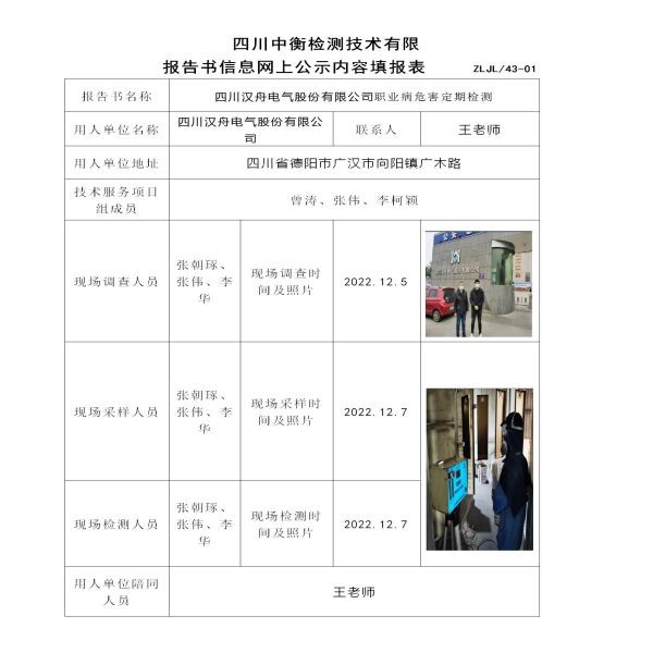 四川漢舟電氣股份有限公司定期檢測