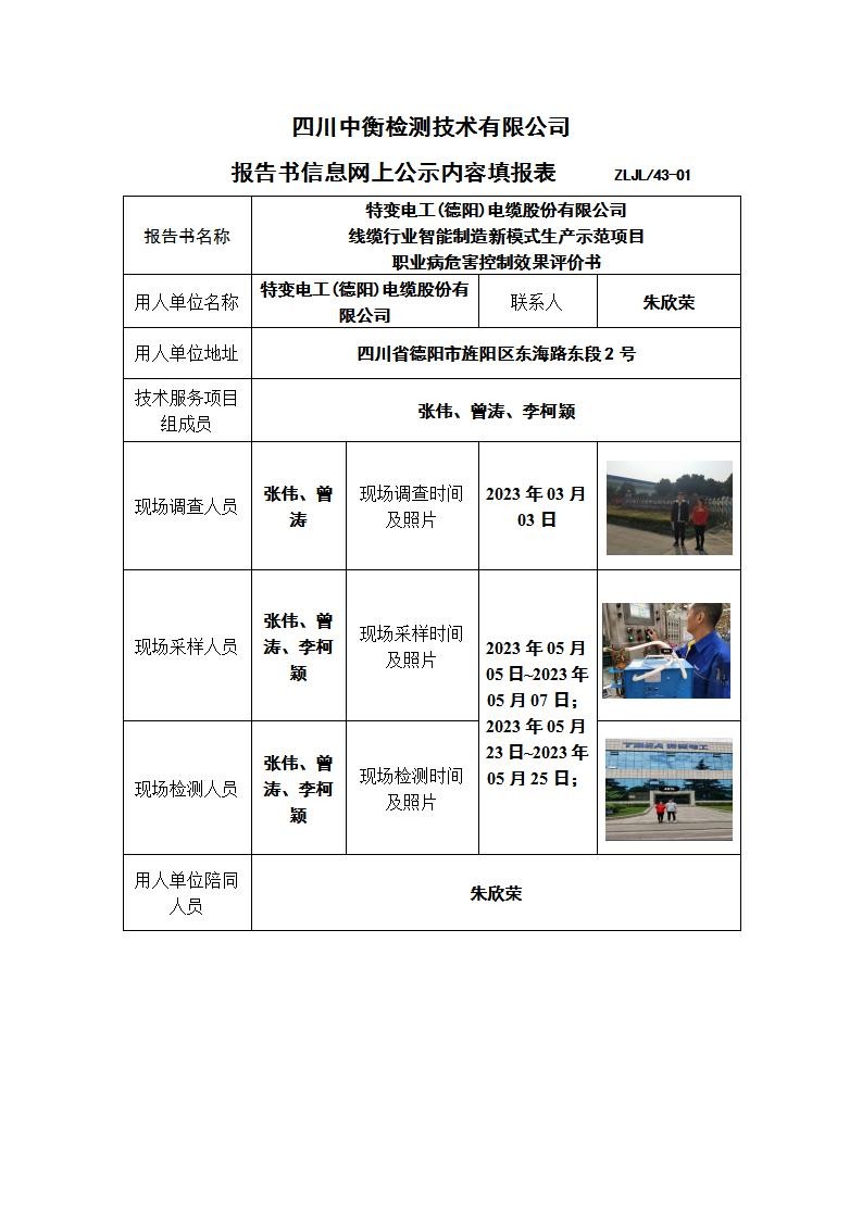 特變電工(德陽)電纜股份有限公司“線纜行業智能制造新模式生產示范項目”職業病危害控制效果評價