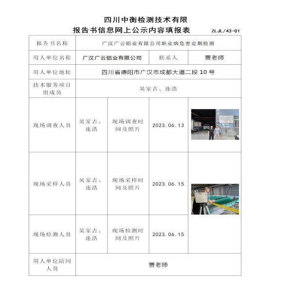 廣漢廣云鋁業(yè)有限公司定期檢測