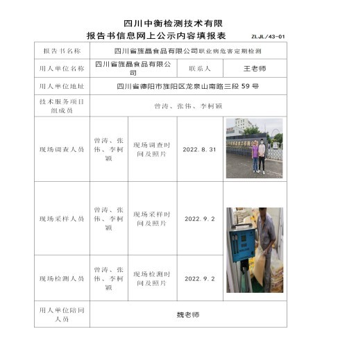 四川省旌晶食品有限公司定期檢測