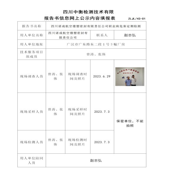 四川諾成航空橡塑密封有限責(zé)任公司定期檢測(cè)