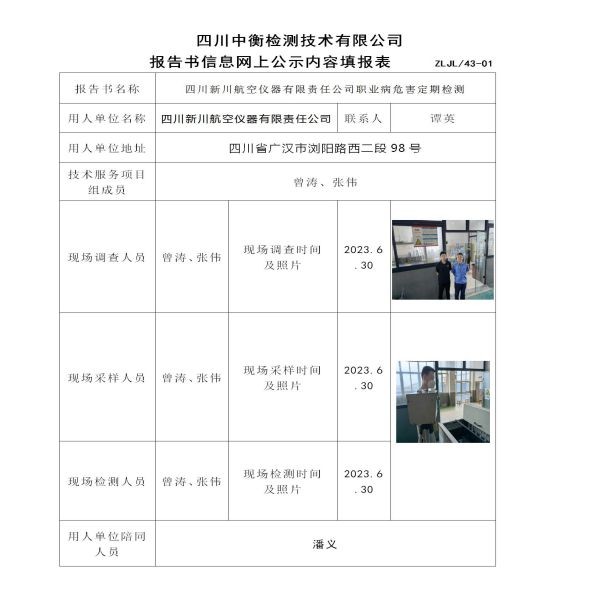 四川新川航空儀器有限責(zé)任公司職業(yè)病危害定期檢測(cè)