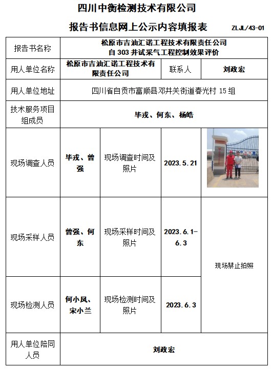 松原市吉油匯諾工程技術有限責任公司 自303井試采氣工程控制效果評價