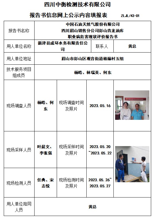中國石油天然氣股份有限公司 四川眉山銷售分公司彭山青龍油庫 職業病危害現狀評價報告書