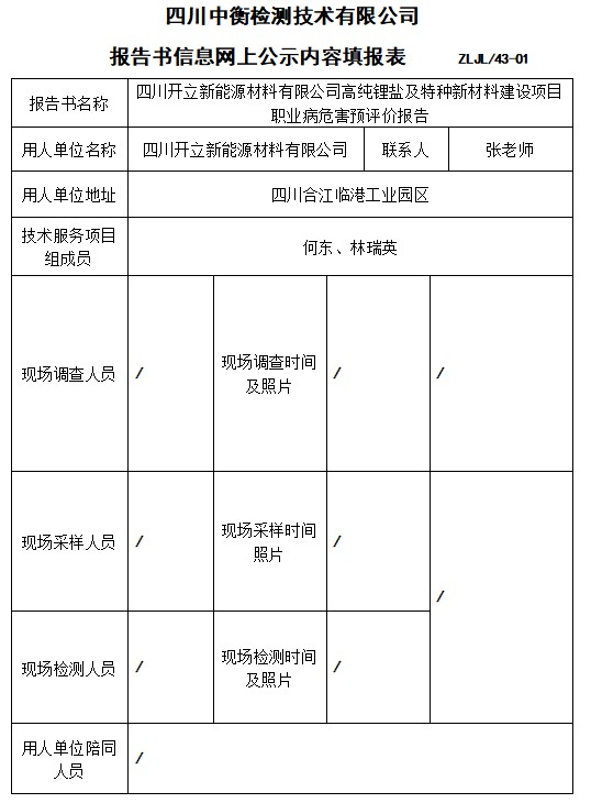 四川開立新能源材料有限公司高純鋰鹽及特種新材料建設(shè)項(xiàng)目職業(yè)病危害預(yù)評(píng)價(jià)報(bào)告