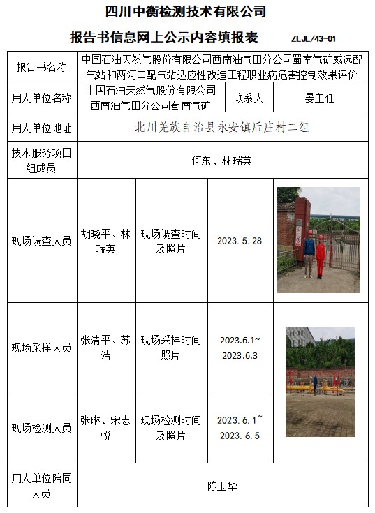 中國石油天然氣股份有限公司西南油氣田分公司蜀南氣礦威遠配氣站和兩河口配氣站適應(yīng)性改造工程職業(yè)病危害控制效果評價