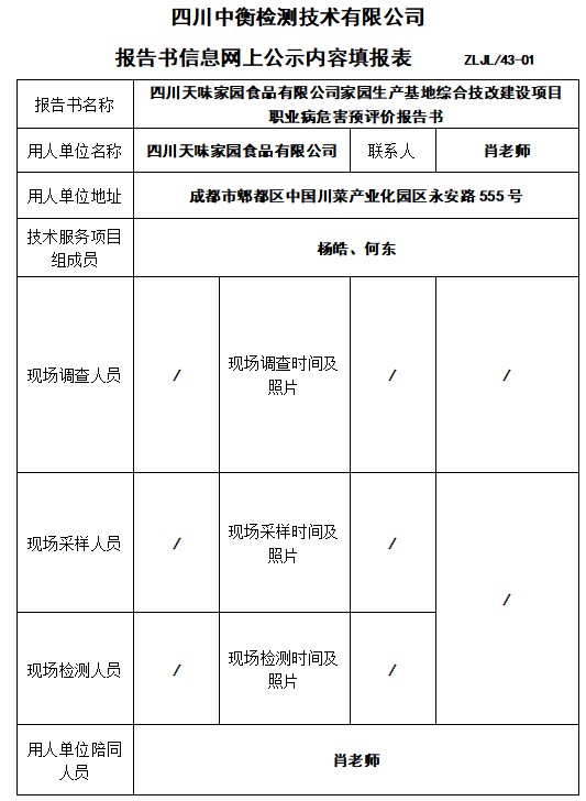 四川天味家園食品有限公司家園生產(chǎn)基地綜合技改建設(shè)項(xiàng)目職業(yè)病危害預(yù)評(píng)價(jià)報(bào)告書